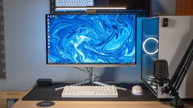Tra gli accessori più sottovalutati in assoluto c’è la barra luminosa per monitor: una lampada LED che si posiziona direttamente sopra lo schermo e che, una volta provata, cambia davvero il modo di lavorare. Il primo vantaggio è il comfort visivo, quando siamo in una stanza buia con la sola illuminazione del monitor, la luce diffusa non ci isola completamente. In più, svolge anche il ruolo di una vera lampada da scrivania, permettendo di leggere, scrivere o disegnare senza occupare spazio extra.