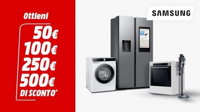 Fino al 26 marzo da MediaWorld ci sono i Samsung Days, la promozione che permette di ottenere uno sconto immediato in carrello fino a 500 euro a seconda dell’importo totale della spesa effettuata. Maggiore è la spesa, più alto sarà lo sconto di cui si beneficerà.