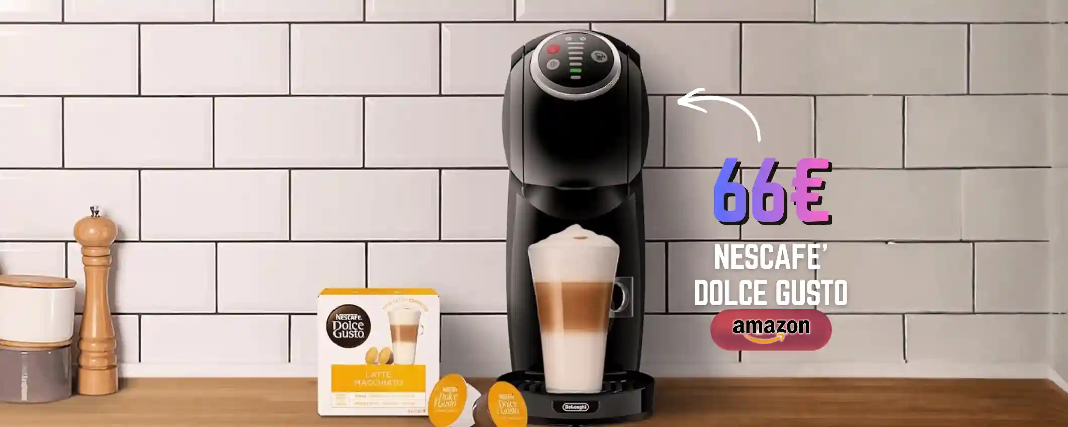 Con uno sconto del 43% andato online ora, la Nescafé Dolce Gusto Genio S deve essere tua. L’offerta di Primavera fa la promo, tu l’acquisto: mettila in carrello a soli 66,40€ subito.